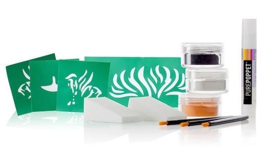 * A selection of 2 or 3 stencils for the face or body, plus applicators that allow for intricate face painting.