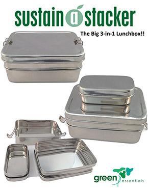 * Is a convenient, compact and reusable 3 Compartment Food Grade Stainless Steel Lunchbox Sustain-a-stacker.
