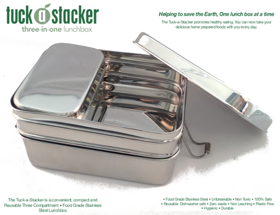 * Is a convenient, compact and reusable 3 compartment food grade Stainless Steel Lunchbox.